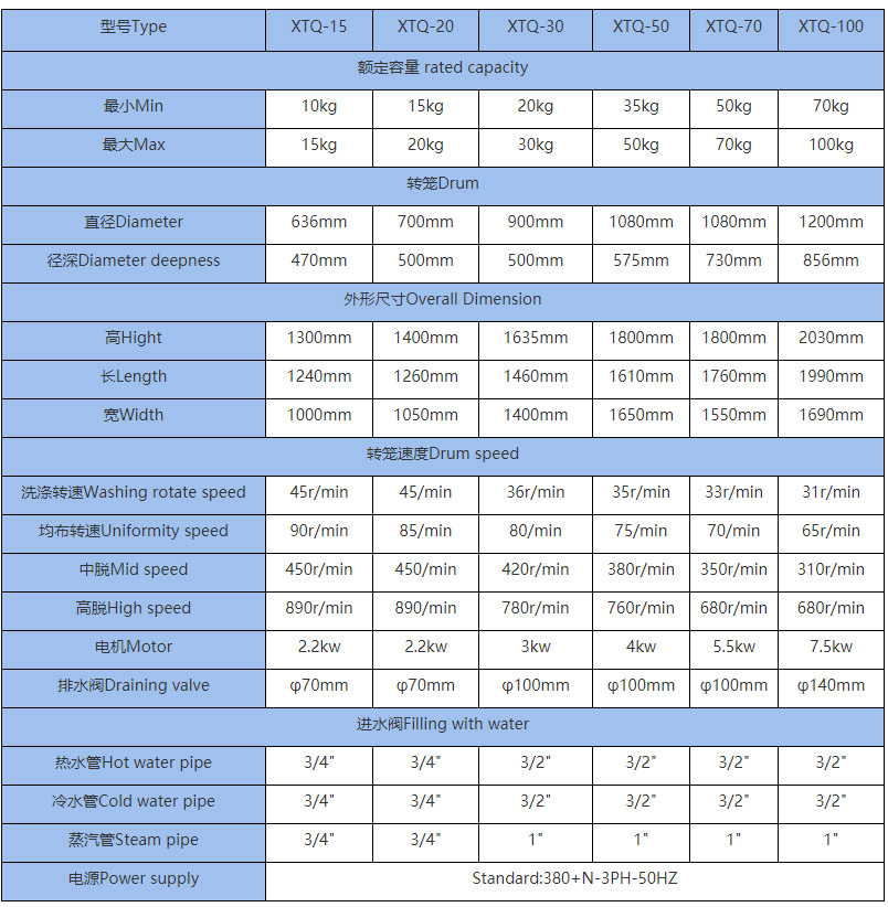 一、全自動洗脫機主要技術(shù)參數(shù)(Main Technical specifications)