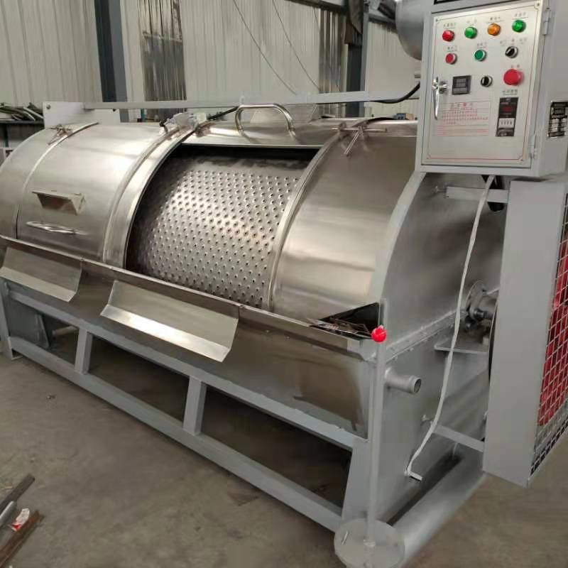 工業(yè)洗衣機(jī):按容量大小分為:15kg、30kg、50kg、70kg、100kg、150kg、200kg等系列。該設(shè)備是滾筒型,內(nèi)、外殼采用不銹鋼制作而成,平整光滑、耐腐蝕、不損傷織物。該機(jī)由內(nèi)筒、外筒、電機(jī)、支撐總成、傳動(dòng)總成、電器總成組成。結(jié)構(gòu)合理、安裝使用方便。工作原理:由頂置電機(jī)、三角膠帶、帶動(dòng)傳動(dòng)總成,使內(nèi)筒作正反轉(zhuǎn)運(yùn)轉(zhuǎn),通過(guò)織物與織物、織物與內(nèi)筒壁的相互摩擦,達(dá)到洗滌效果。機(jī)器內(nèi)置過(guò)熱、過(guò)載裝置、定時(shí)裝置、正反轉(zhuǎn)控制裝置。外筒門設(shè)有安全裝置,若運(yùn)行中門被打開(kāi),機(jī)器立即停止運(yùn)轉(zhuǎn),確保機(jī)器、操作人員的安全。