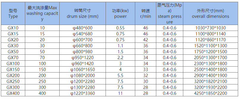 一、工業(yè)洗衣機(jī)主要技術(shù)參數(shù)(Main Technical specifications)