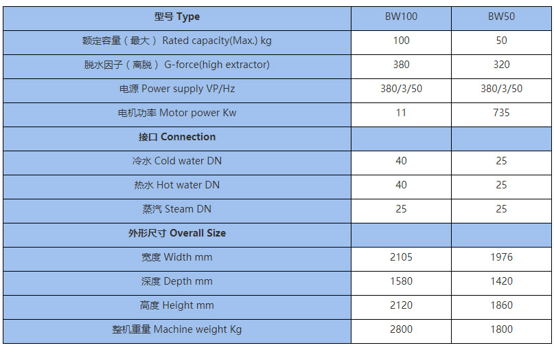 一、衛(wèi)生隔離式洗衣機主要技術參數(Main Technical specifications)